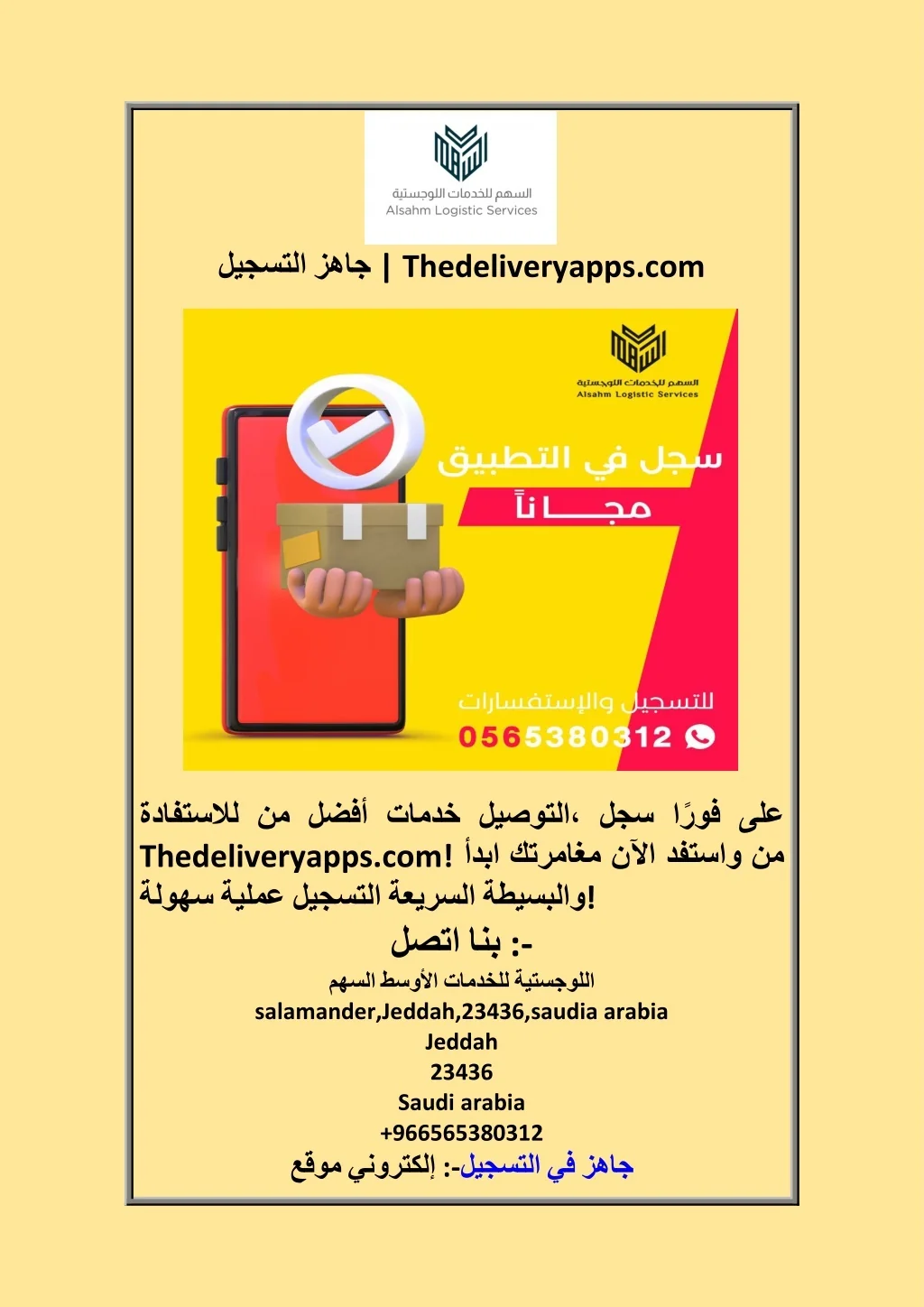 ليجستلا زهاج | Thedeliveryapps.com ةدافتسلل نم لضفأ تامدخ ليصوتلا، لجس ارًوف ىلع Thedeliveryapps.com! أدبا كترماغم نلا دفتساو نم ةلوهس ةيلمع ليجستلا ةعيرسلا ةطيسبلاو! لصتا انب :- مهسلا طسولا تامدخلل ةيتسجوللا salamander,Jeddah,23436,saudia arabia Jeddah 23436 Saudi arabia +966565380312 عقوم ينورتكلإ :-ليجستلا يف زهاج