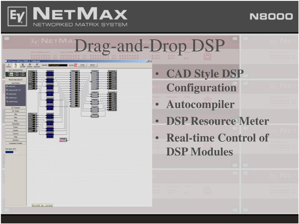 Drag-and-Drop DSP • CAD Style DSP Configuration • Autocompiler • DSP Resource Meter • Real-time Control of DSP Modules