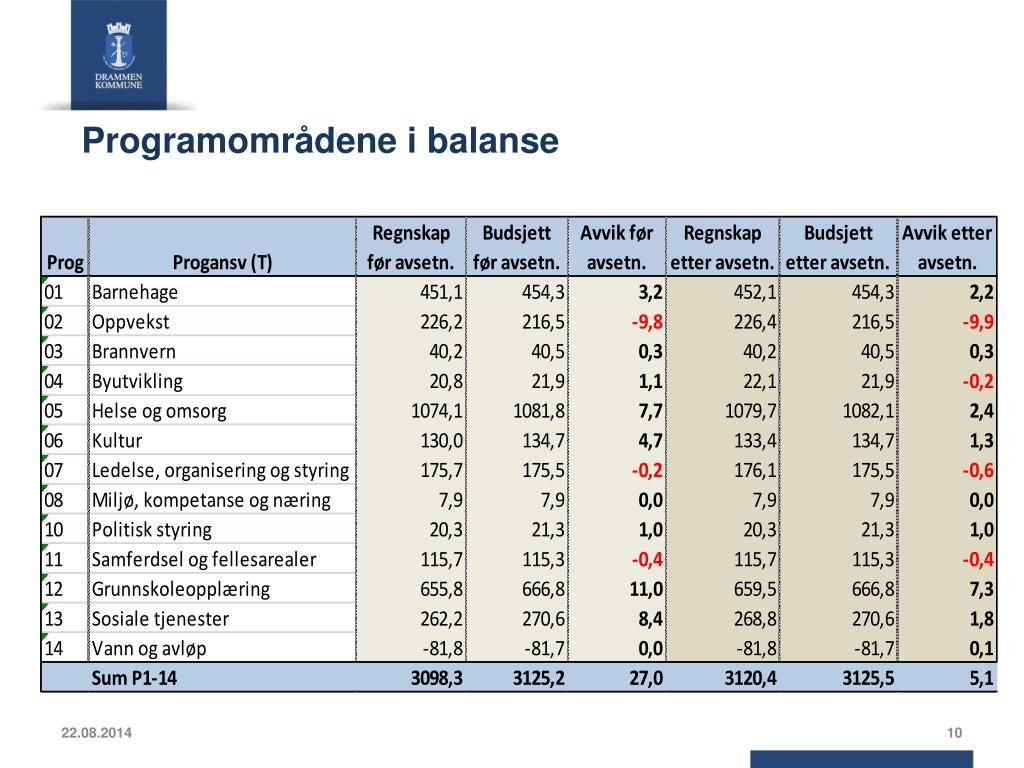 Gode resultater for bærekraftig vekst • Systematisk omstillingsarbeid og god styring har gitt gode resultater i 2013 • Det er i budsjettene for årene 2010 - 2013 forutsatt innsparinger på totalt 285 mill. kroner. Faktisk virkning er lavere, jfr. merforbruk innenfor Oppvekst og HSO • Selv i et krevende år har det vært rom for en brutto vekst og satsing på nye aktiviteter • Årsresultatet (overskuddet) foreslås avsatt til videre oppbygging av reservene