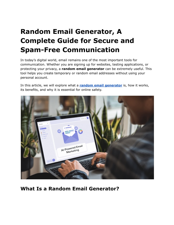 Random Email Generator, A Complete Guide for Secure and Spam-Free Communication In today’s digital world, email remains one of the most important tools for communication. Whether you are signing up for websites, testing applications, or protecting your privacy, a random email generator can be extremely useful. This tool helps you create temporary or random email addresses without using your personal account. In this article, we will explore what a random email generator is, how it works, its benefits, and why it is essential for online safety. What Is a Random Email Generator?