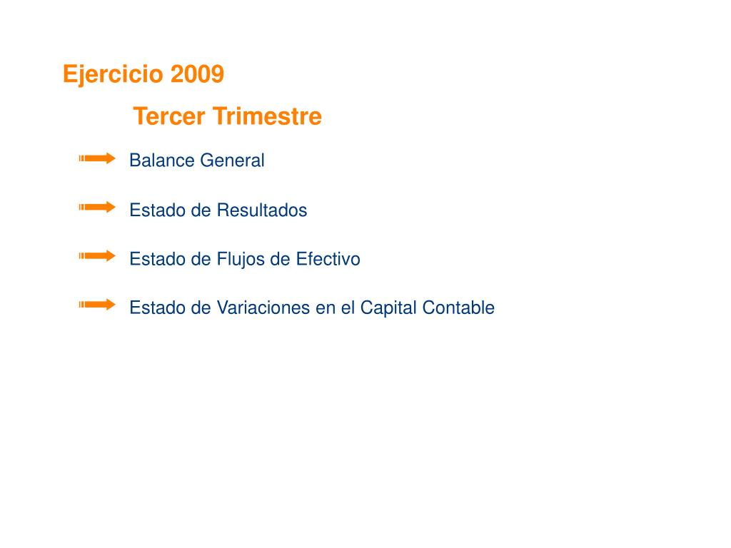 Ejercicio 2009 Tercer Trimestre Balance General Estado de Resultados Estado de Flujos de Efectivo Estado de Variaciones en el Capital Contable