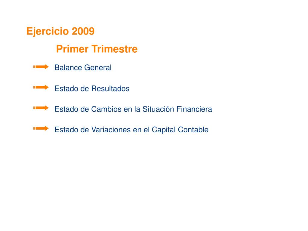 Ejercicio 2009 Primer Trimestre Balance General Estado de Resultados Estado de Cambios en la Situación Financiera Estado de Variaciones en el Capital Contable