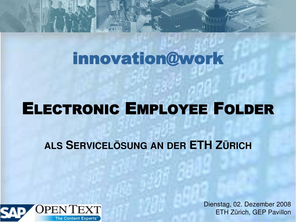 innovation@work Electronic Employee Folder als Servicelösung an der ETH Zürich Dienstag, 02. Dezember 2008 ETH Zürich, GEP Pavillon