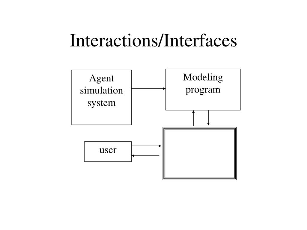 Possible Input to the Modeling Program 0: < TV (pos 20 30) (size 15 15) (color b) > < agent_1 (pos 30 50) (size 10) (color brg) (go right 30) > < agent_2 (pos 75 10) (size 10) (color brg) (go up 40) > ... 1: < agent_1 (go up 15) > 2: < agent_2 (go right 3) > 3: < agent_2 (go up 35) > 4: < agent_1 (go right 25) > … *see third slide ``Our Problem: The visualization window”