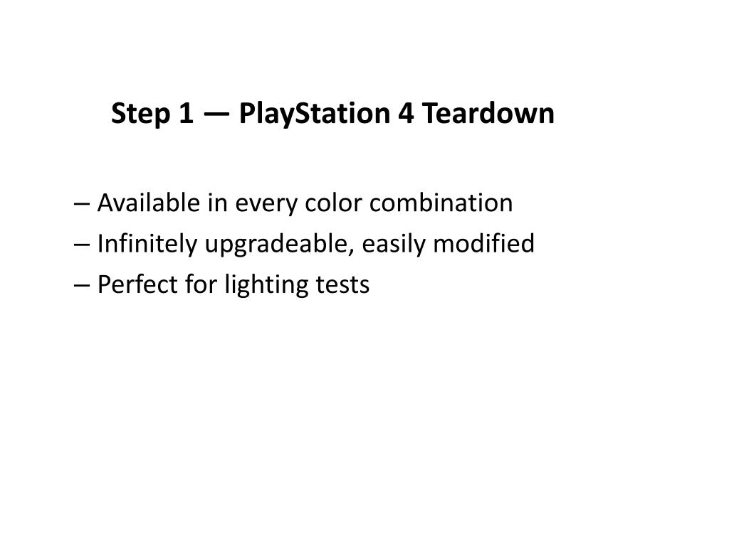 Step 1 — PlayStation 4 Teardown • Available in every color combination • Infinitely upgradeable, easily modified • Perfect for lighting tests