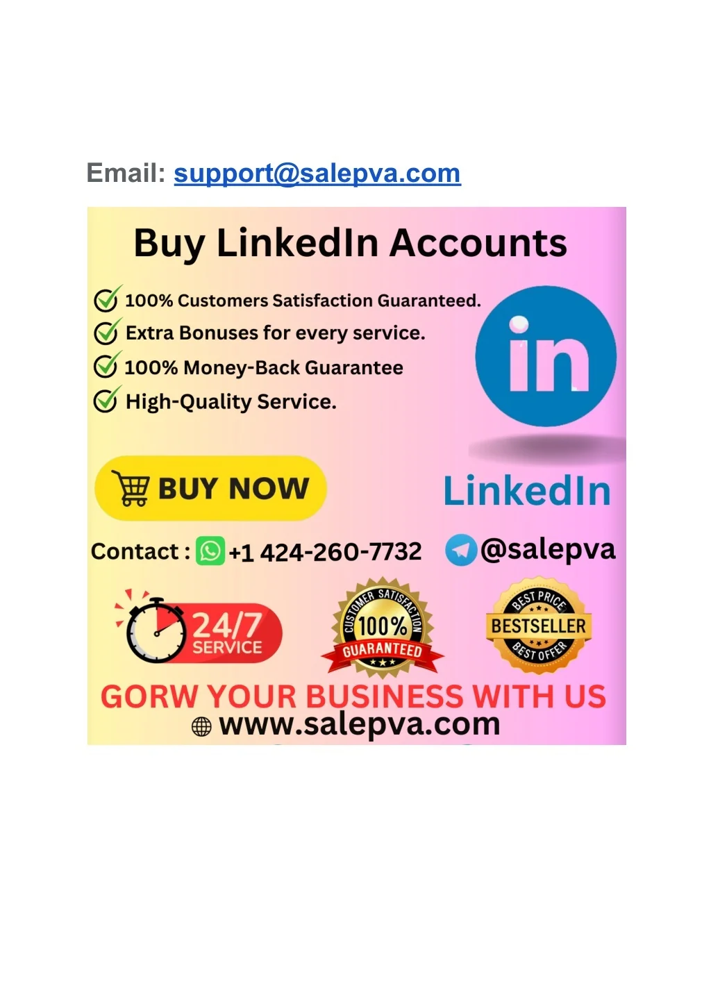 Buy LinkedIn Accounts 24 Hours Reply/Contact Skype: salepva Telegram: @salepva WhatsApp: +1 (424) 260-7732 Email: support@salepva.com
