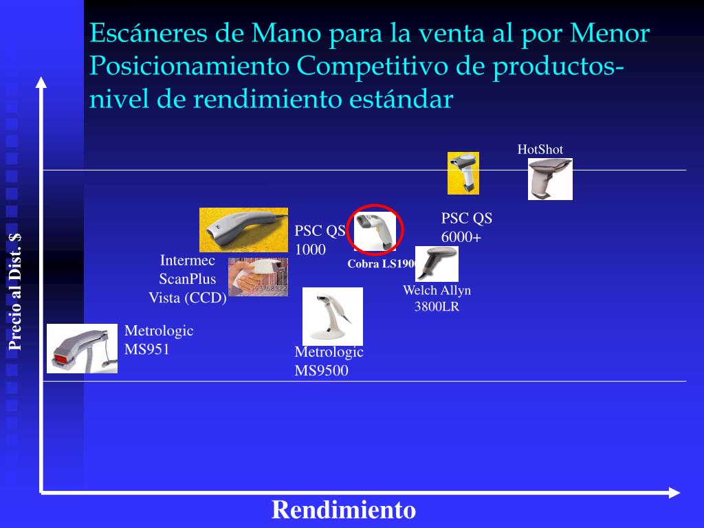 HotShot Welch Allyn 3800LR PSC QS 6000+ Cobra LS1900 Metrologic MS9500 Escáneres de Mano para la venta al por MenorPosicionamiento Competitivo de productos- nivel de rendimiento estándar PSC QS 1000 Intermec ScanPlus Vista (CCD) Precio al Dist. $ Metrologic MS951 Rendimiento