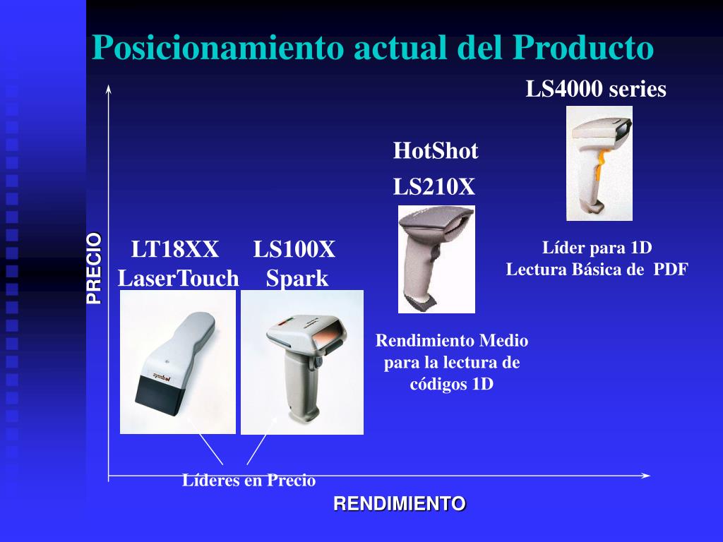 Posicionamiento actual del Producto LS4000 series HotShot LS210X LT18XX LaserTouch LS100X Spark Líder para 1D Lectura Básica de PDF PRECIO Rendimiento Medio para la lectura de códigos 1D Líderes en Precio RENDIMIENTO