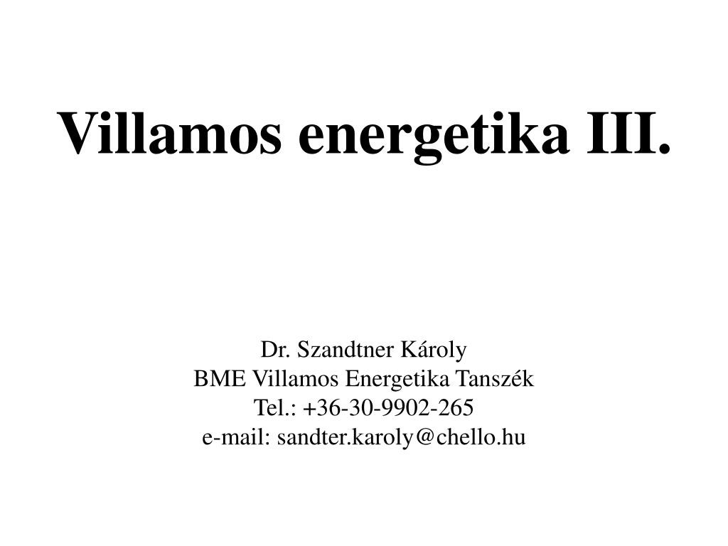 Dr. Szandtner KárolyBME Villamos Energetika TanszékTel.: +36-30-9902-265e-mail: sandter.karoly@chello.hu Villamos energetika III.