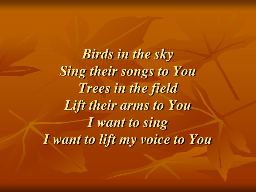 Birds in the skySing their songs to YouTrees in the fieldLift their arms to YouI want to singI want to lift my voice to You