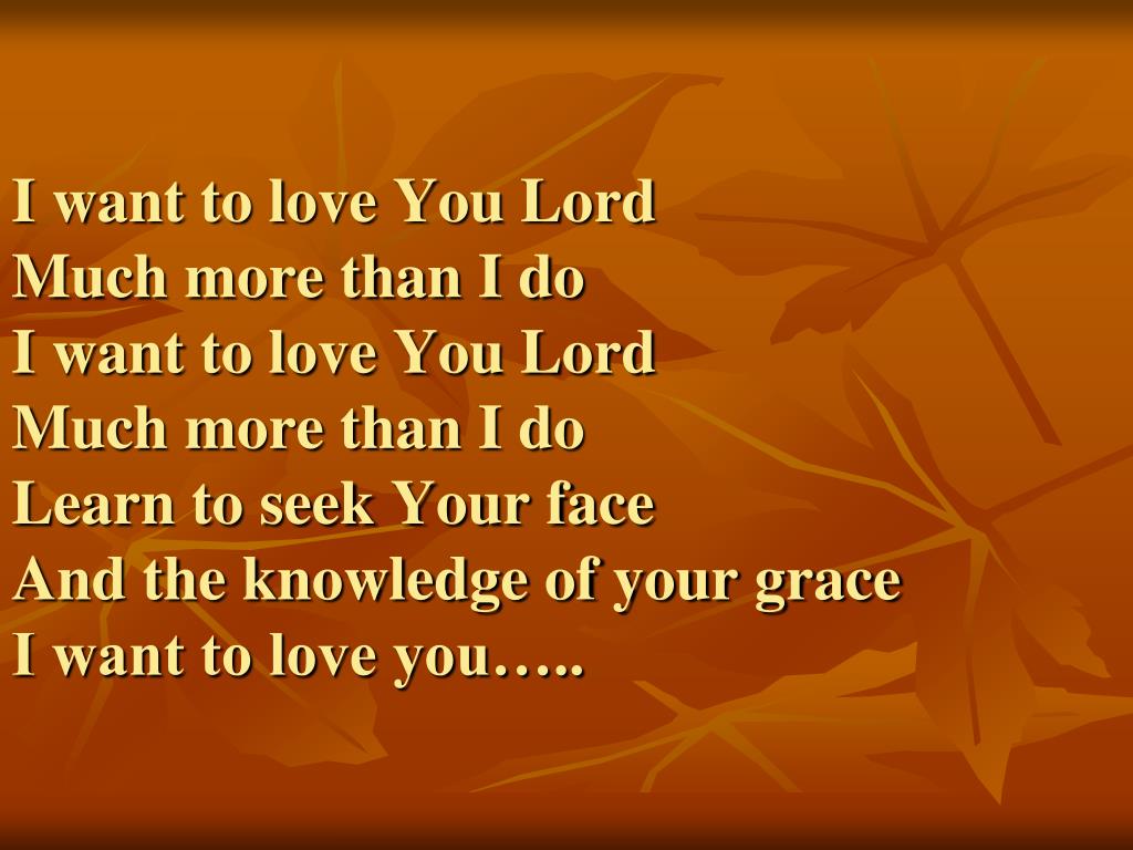 I want to love You LordMuch more than I do I want to love You LordMuch more than I doLearn to seek Your face And the knowledge of your graceI want to love you…..