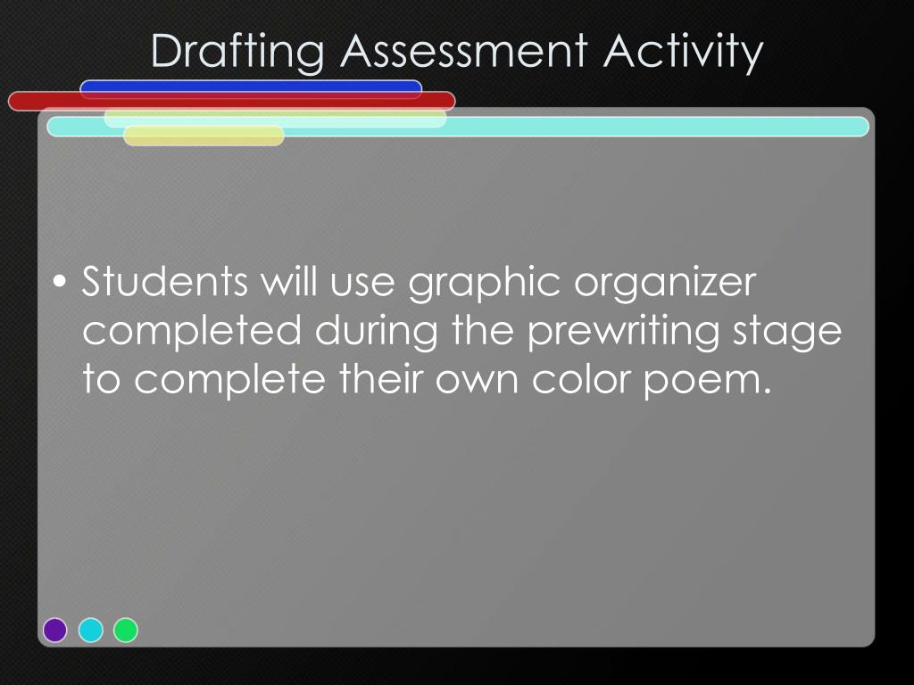 Drafting Assessment Activity • Students will use graphic organizer completed during the prewriting stage to complete their own color poem.