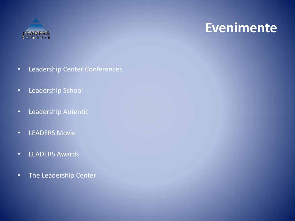 Evenimente • Leadership Center Conferences • Leadership School • Leadership Autentic • LEADERS Movie • LEADERS Awards • The Leadership Center