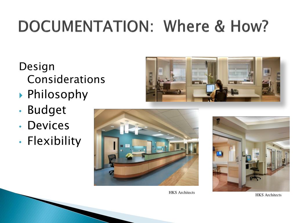 DOCUMENTATION: Where & How? Design Considerations • Philosophy • Budget • Devices • Flexibility HKS Architects HKS Architects