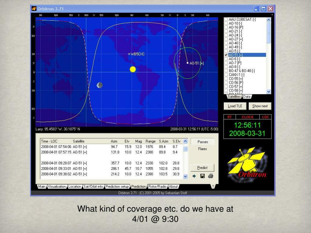 What kind of coverage etc. do we have at 4/01 @ 9:30