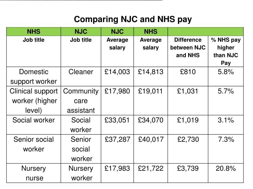 Poor relations of the public sector • Local Government has the worst pay and conditions in the whole of the public sector for comparable jobs. • From the bottom of the pay spine through to the top. • Cleaners and catering assistants earn about £800 a year (6%) more in the NHS. • And about £950 a year (7%) more in the police service.