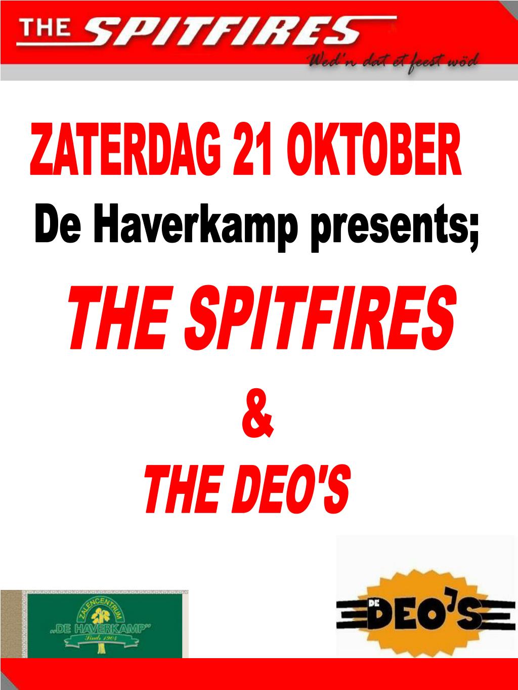 ZATERDAG 21 OKTOBER De Haverkamp presents; THE SPITFIRES & THE DEO'S