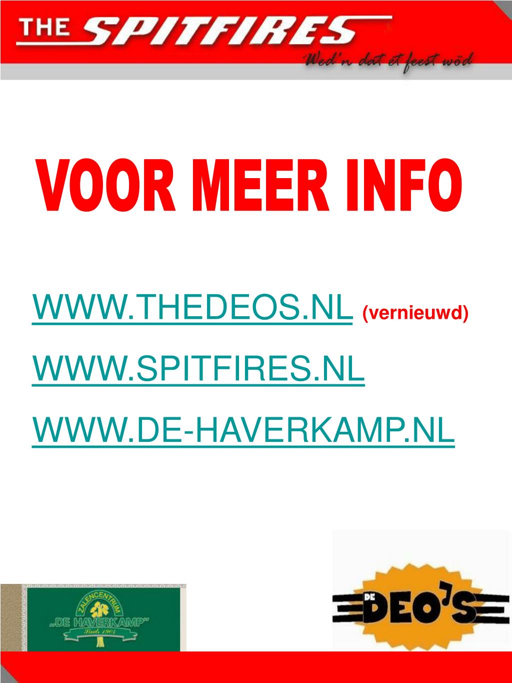 VOOR MEER INFO WWW.THEDEOS.NL(vernieuwd) WWW.SPITFIRES.NL WWW.DE-HAVERKAMP.NL