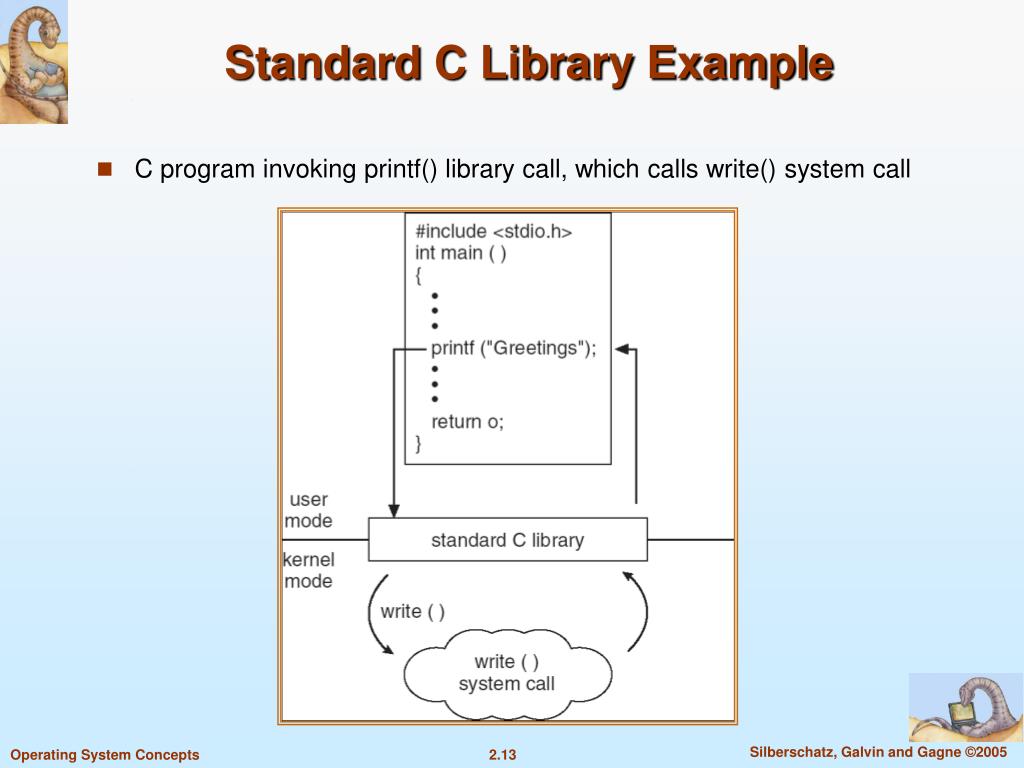 Standard C Library Example • C program invoking printf() library call, which calls write() system call