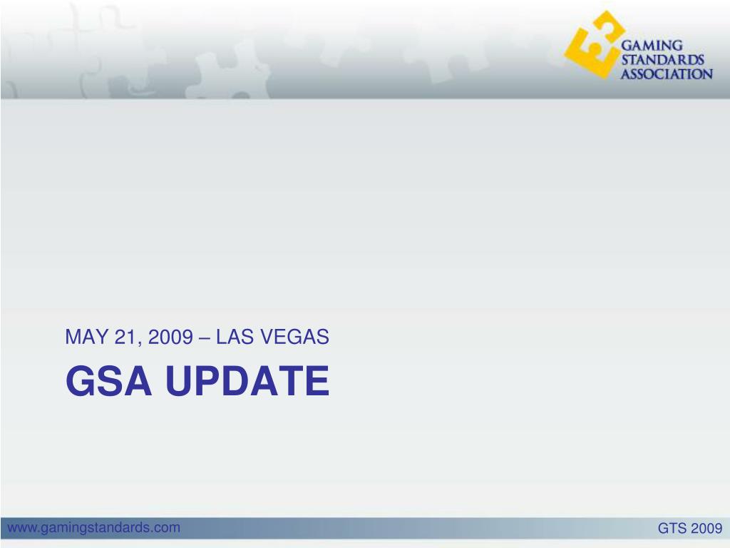 MAY 21, 2009 – LAS VEGAS. GSA UPDATE. PLATINUM MEMBERS. AGENDA GSA UPDATE. PART 1: General update PART 2: Features / Functionality of the standards PART 3: Gem’s and future concepts. AUSTRALASIA. Macau Singapore Philippines Taiwan Australia Gaming Communication Technology Workshop