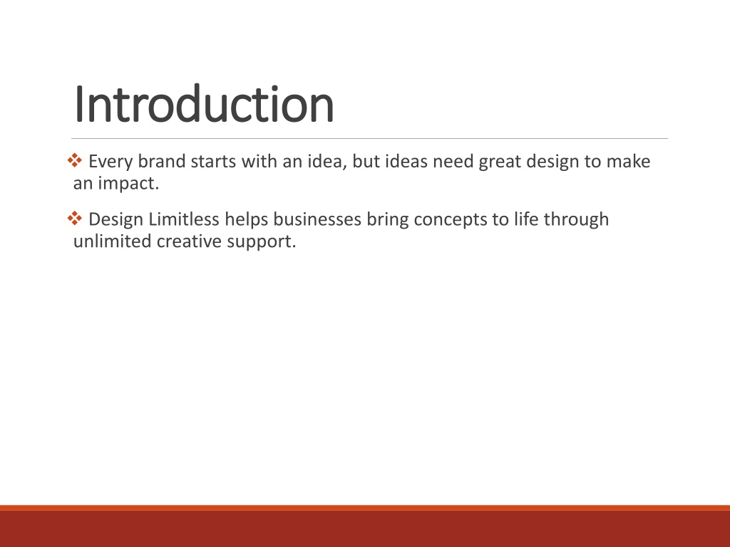 Introduction Introduction  Every brand starts with an idea, but ideas need great design to make an impact.  Design Limitless helps businesses bring concepts to life through unlimited creative support.