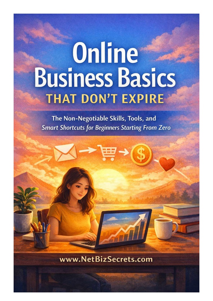 Online Business Basics That Don’t Expire Introduction — What This Book Is (and Isn’t) This book is for complete beginners. If you’ve earned zero dollars online, you’re in the right place. If online business feels confusing, scattered, or louder than it should be, this book is for you. What this book is This book is a clarity guide. It explains how online money actually flows. Not in theory. Not through hype. Not through complicated systems. You will learn the simple model behind all online income. You will learn the skills that matter before tools. You will learn how to use modern tools without being overwhelmed. You will learn how to focus on earning your first dollar. Not building everything at once. www.netbizsecrets.com