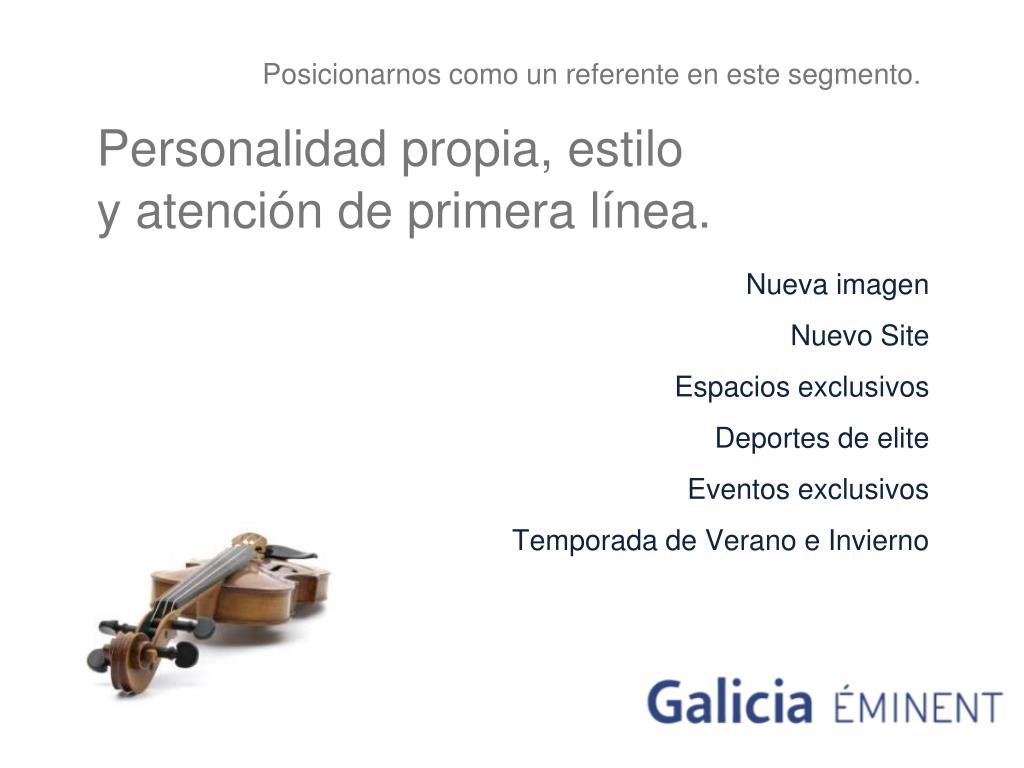 Posicionarnos como un referente en este segmento. Personalidad propia, estilo y atención de primera línea. Nueva imagen Nuevo Site Espacios exclusivos Deportes de elite Eventos exclusivos Temporada de Verano e Invierno