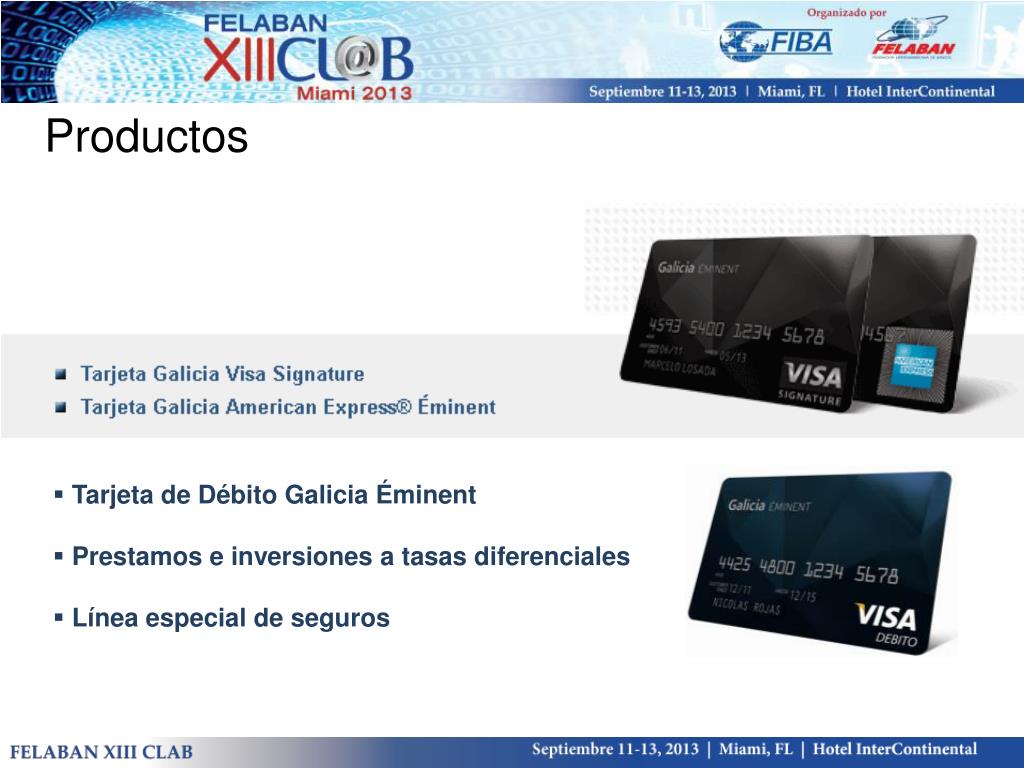 Productos • Tarjeta de Débito Galicia Éminent • Prestamos e inversiones a tasas diferenciales • Línea especial de seguros