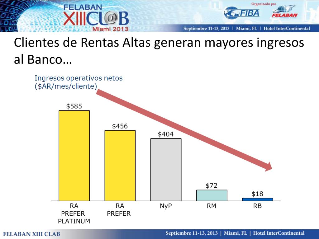 Los clientes de Renta Alta aportan el 25% de la rentabilidad SISTEMA FINANCIERO ARGENTINO Tamaño del mercado (personas físicas) RA ~ 5 – 10%