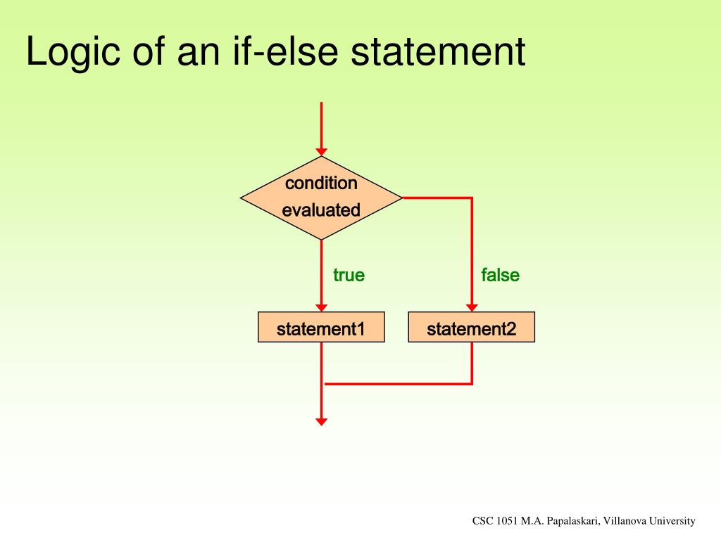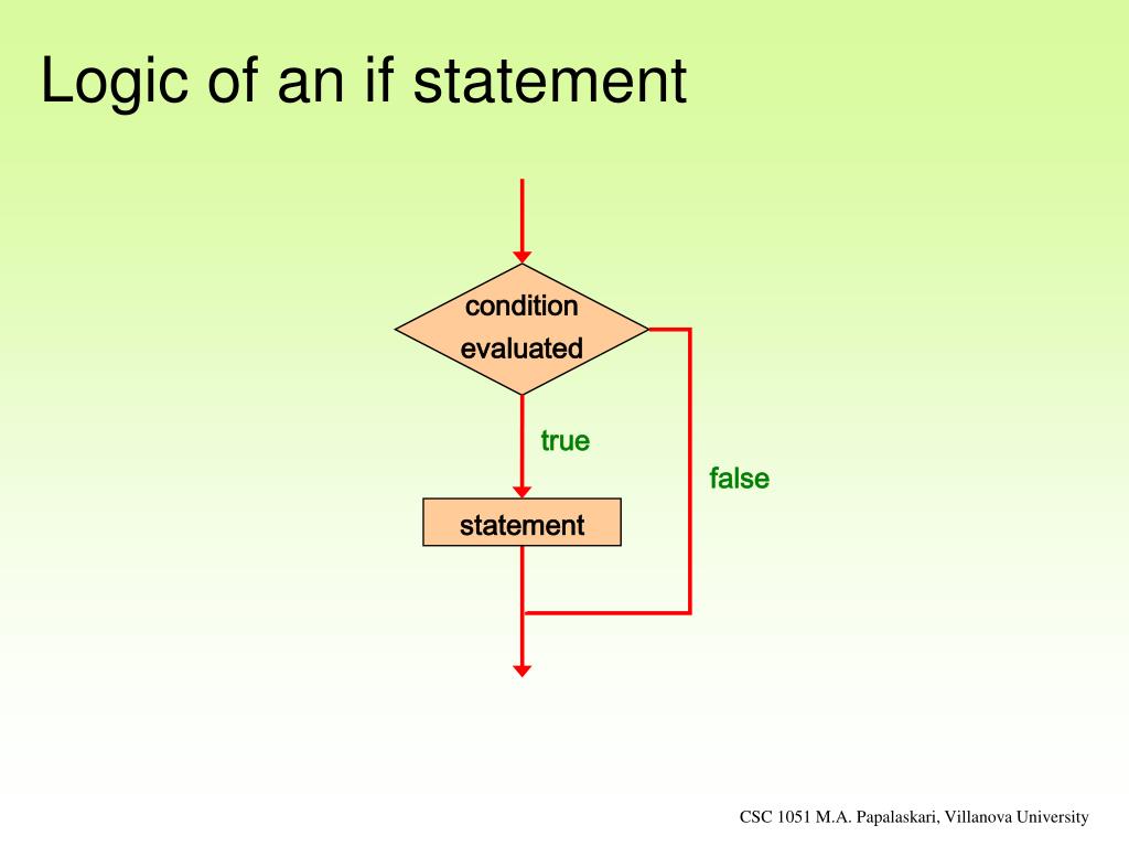 condition evaluated true false statement Logic of an if statement CSC 1051 M.A. Papalaskari, Villanova University