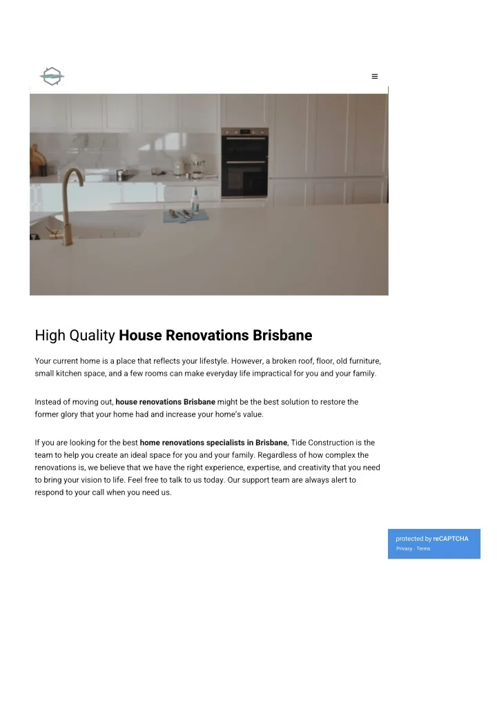 High Quality House Renovations Brisbane Your current home is a place that reflects your lifestyle. However, a broken roof, floor, old furniture, small kitchen space, and a few rooms can make everyday life impractical for you and your family. Instead of moving out, house renovations Brisbane might be the best solution to restore the former glory that your home had and increase your home’s value. If you are looking for the best home renovations specialists in Brisbane, Tide Construction is the team to help you create an ideal space for you and your family. Regardless of how complex the renovations is, we believe that we have the right experience, expertise, and creativity that you need to bring your vision to life. Feel free to talk to us today. Our support team are always alert to respond to your call when you need us. protected by reCAPTCHA Privacy - Terms Privacy - Terms