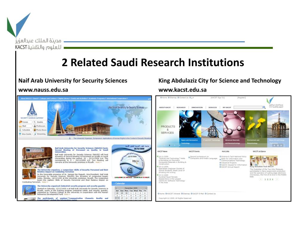 Naif Arab University for Security Sciences www.nauss.edu.sa King Abdulaziz City for Science and Technology www.kacst.edu.sa 2 Related Saudi Research Institutions
