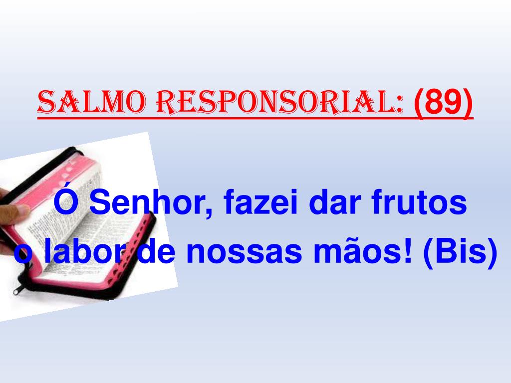 salmo responsorial: (89) 4- Saciai-nos de manhã com vosso amor, e exultaremos de alegria todo o dia! Manifestai a vossa obra a vossos servos, e a seus filhos revelai a vossa glória! Ó Senhor, fazei dar frutos o labor de nossas mãos!