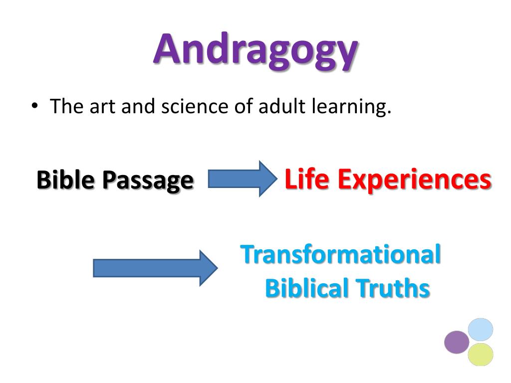 Andragogy • The art and science of adult learning. Bible Passage Life Experiences Transformational Biblical Truths