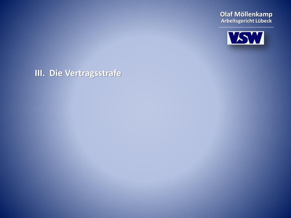 Zahlungsversprechen für den Fall einer individuell festgelegten Pflichtverletzung: • Rechtsgrundlage §§ 339 ff. BGB • i.d.R. arbeitsvertragliche Vereinbarung • damit AGB-Kontrolle