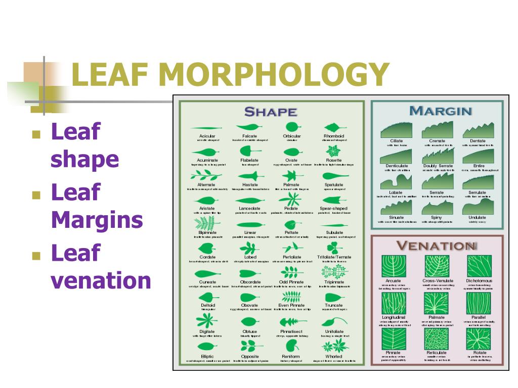 LEAF MORPHOLOGY • Leaf shape • Leaf Margins • Leaf venation
