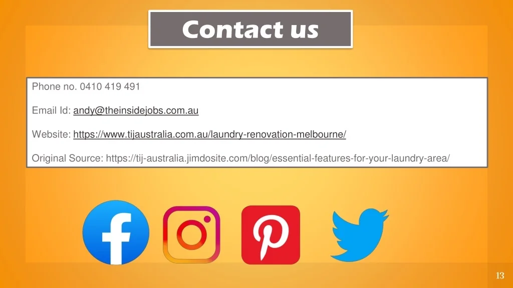 Contact us Phone no. 0410 419 491 Email Id: andy@theinsidejobs.com.au Website: https://www.tijaustralia.com.au/laundry-renovation-melbourne/ Original Source: https://tij-australia.jimdosite.com/blog/essential-features-for-your-laundry-area/ 13