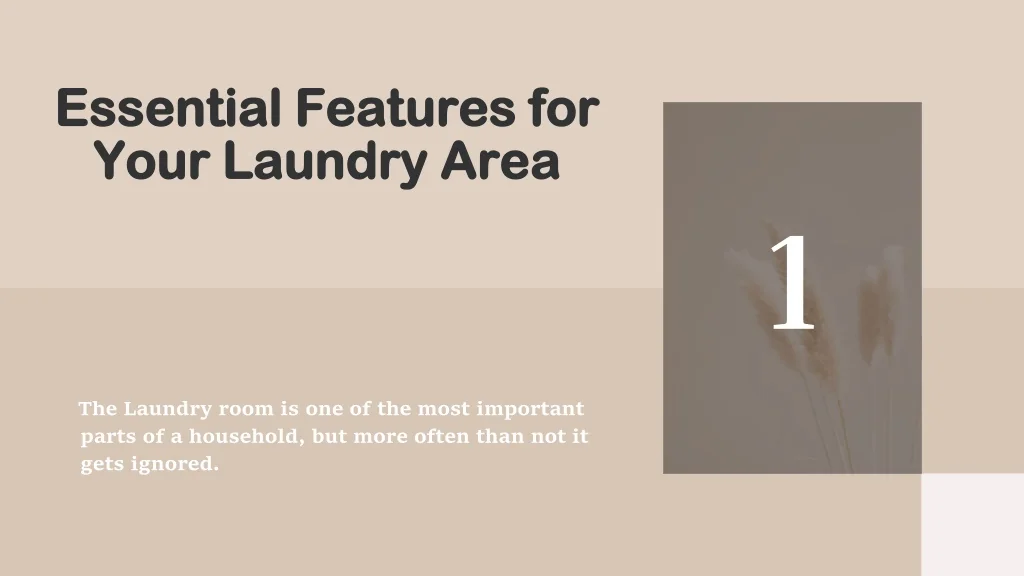 Essential Features for Essential Features for Your Laundry Area Your Laundry Area 1 The Laundry room is one of the most important parts of a household, but more often than not it gets ignored.