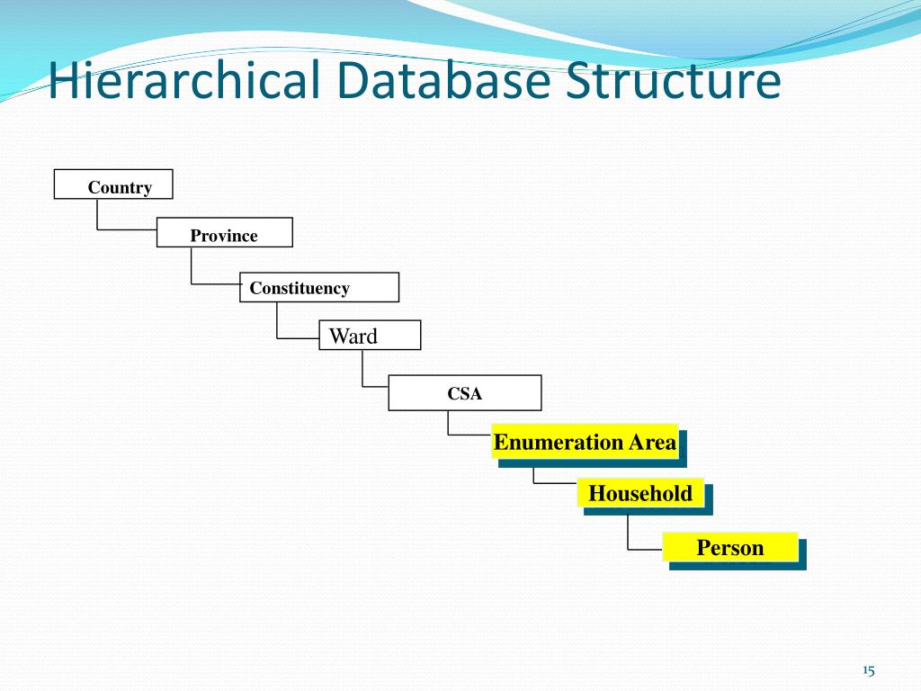 Country Province Constituency Ward CSA EnumerationArea Household Person Hierarchical Database Structure