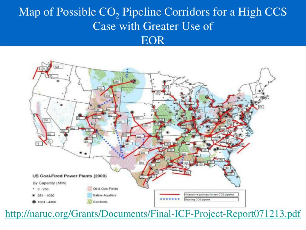 Map of Possible CO2 Pipeline Corridors for a High CCS Case with Greater Use of EOR http://naruc.org/Grants/Documents/Final-ICF-Project-Report071213.pdf