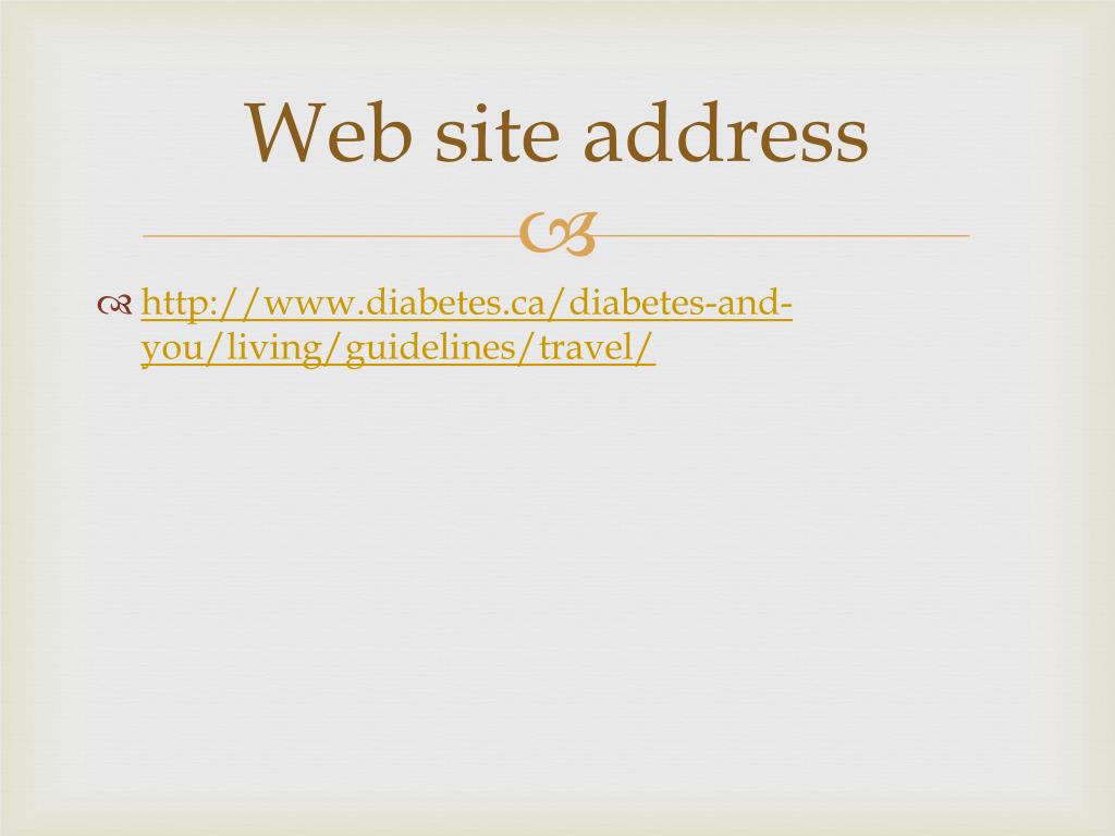 Web site address • http://www.diabetes.ca/diabetes-and-you/living/guidelines/travel/