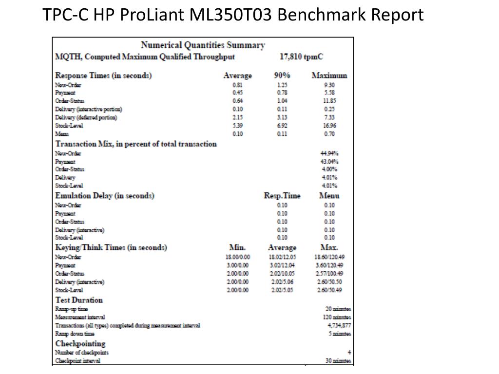 GAE Software Benchmark and Simulation Forecaster Project Documentation 8/30/2012. TPC-C Requirements Standards Document TPC-C Transaction Profiles TPC-C HP ProLiant ML350T03 Benchmark Report TPC-C HP ProLiant ML350T03 Benchmark Architecture