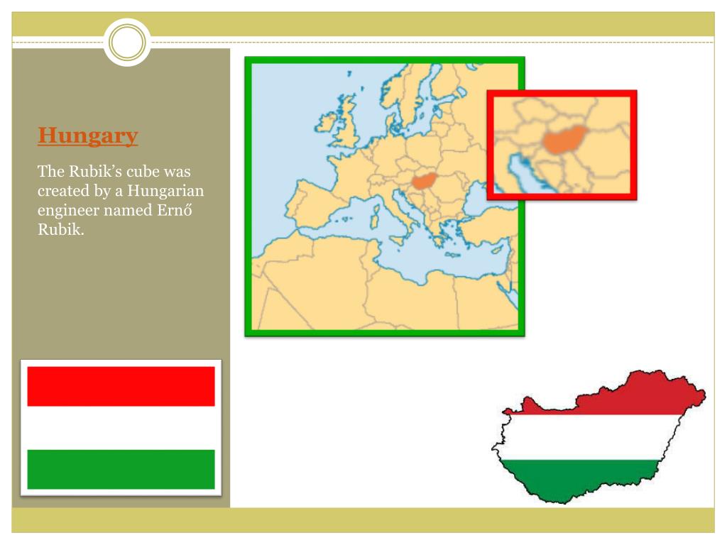 Hungary The Rubik’s cube was created by a Hungarian engineer named Ernő Rubik.