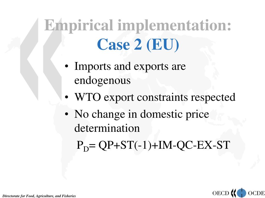 Empirical implementation: Case 2 (EU) • Imports and exports are endogenous • WTO export constraints respected • No change in domestic price determination PD= QP+ST(-1)+IM-QC-EX-ST
