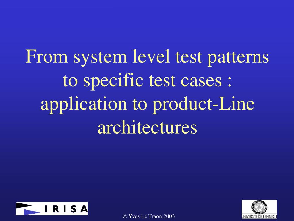 OO System Testing Behavioral test patterns. Automatic test synthesis from UML models. Outline. System testing Behavioral test patterns Generating behavioral test patterns. Testing product lines. Benefiting from the PL specificities Testing commonalities