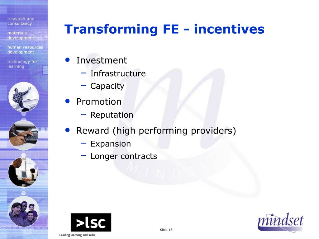 Transforming FE - incentives • Investment • Infrastructure • Capacity • Promotion • Reputation • Reward (high performing providers) • Expansion • Longer contracts