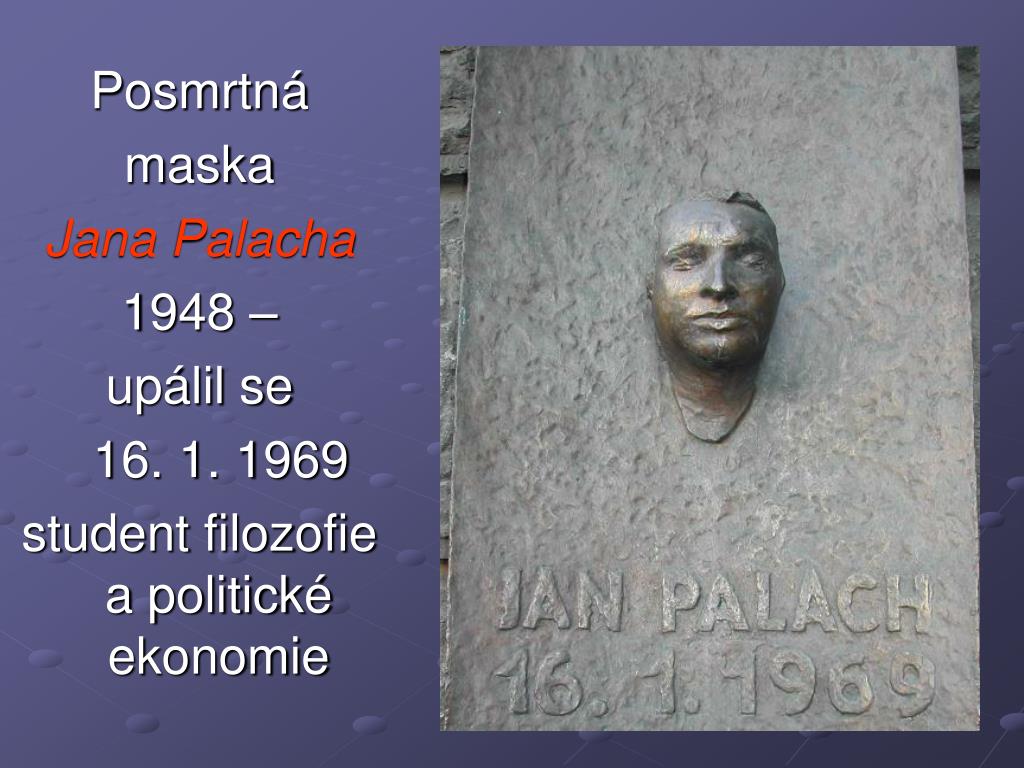 Posmrtná maska Jana Palacha 1948 – upálil se 16. 1. 1969 student filozofie a politické ekonomie