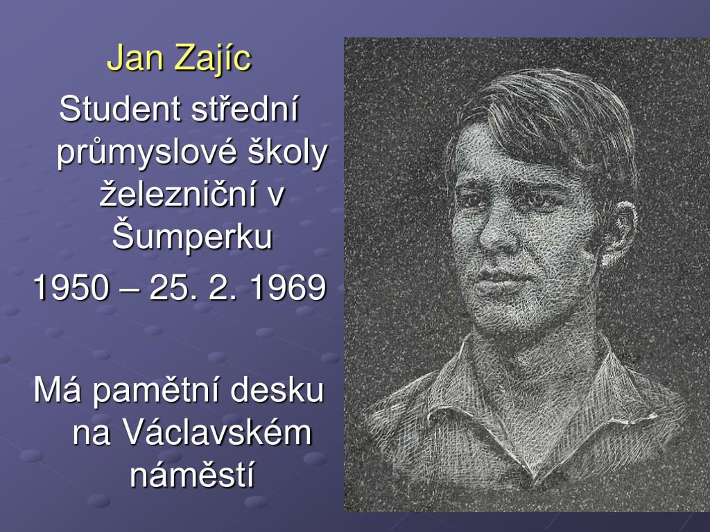 Jan Zajíc Student střední průmyslové školy železniční v Šumperku 1950 – 25. 2. 1969 Má pamětní desku na Václavském náměstí