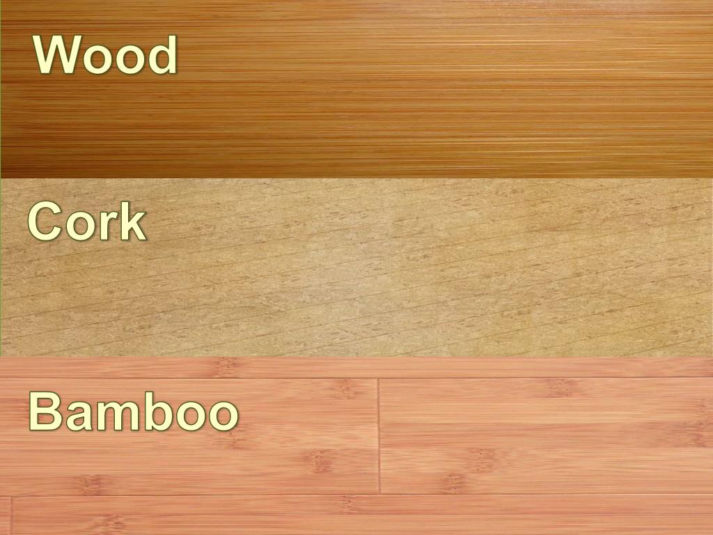 Green Flooring Wood • No flooring product has zero impact on our planet, but some materials are better than others. • You can’t notice it, but your floor affects your health. • Many carpet materials are toxic and cause indoor pollution in your home. • Eco-friendly flooring is durable, attractive, and less expensive than conventional floors and carpets. • It’s a responsible and effective way to enhance your home and make your life “greener.” • We are all aware of the environmental warnings that appear in the news almost daily. • We should do what we can every day to ensure that our planet and our homes are safe and healthful. Cork Bamboo
