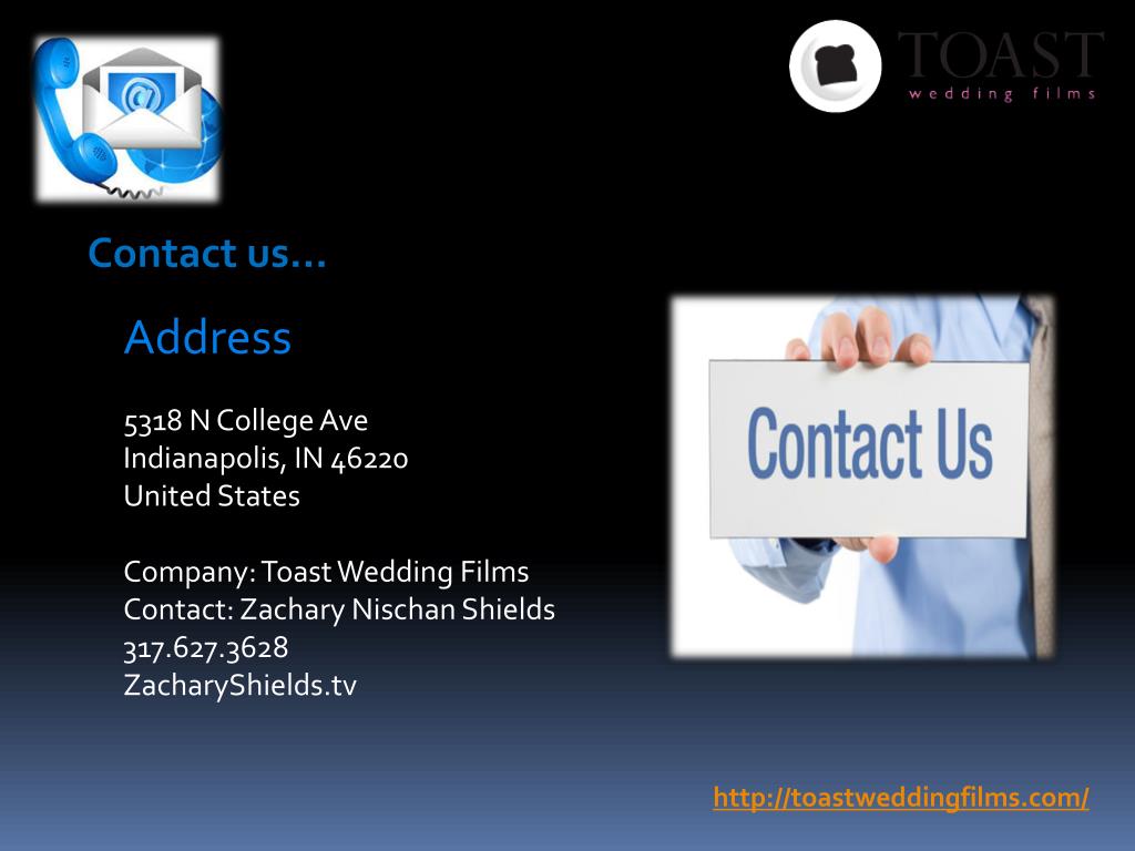 Contact us… Address 5318 N College Ave Indianapolis, IN 46220 United States Company: Toast Wedding Films Contact: Zachary Nischan Shields 317.627.3628 ZacharyShields.tv http://toastweddingfilms.com/